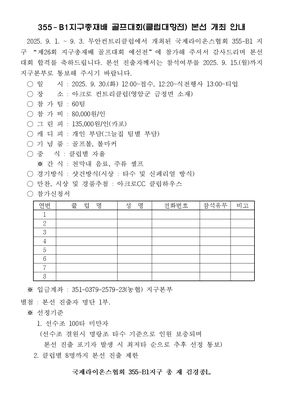 국제라이온스협회 355-B1지구 제26회 총재배 골프대회(클럽대항전) 참가자 추가 모집