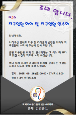 초대합니다. 제2회 지구임원회의 및 지구임원 연수회