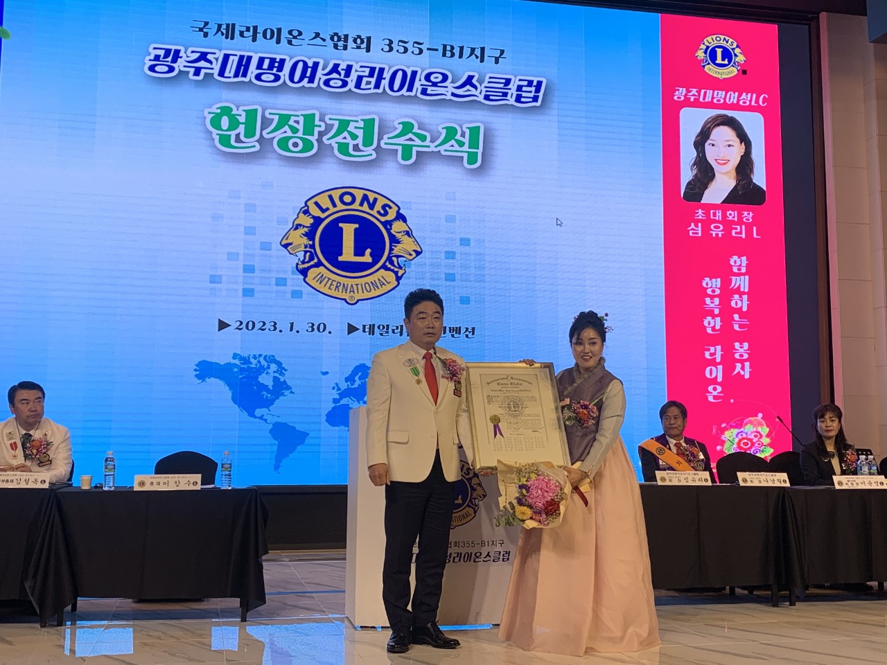 2023년 1월 30일 세계최대 최강 봉사단체인 라이온스에 동참하기 위한 역사적인 광주대명여성라이온스클럽 “헌장의 밤” 행사가 총재 이항수L의 입회하에 데일리웨딩컨벤션에서 진행되었습니다.