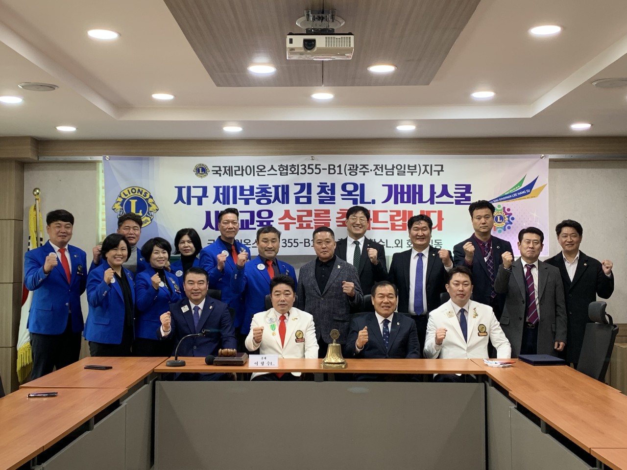 금일 행사는 축하 꽃다발전달 및 경과보고 순으로 진행되었으며 참석하신 모든 라이온 지도자들은 교육을 통해 보고 익혔던 내용을 본 지구를 위해 헌신 봉사하겠다는 지구 제1부총재 김철옥L의 열정을 응원할 것을 다짐했습니다.