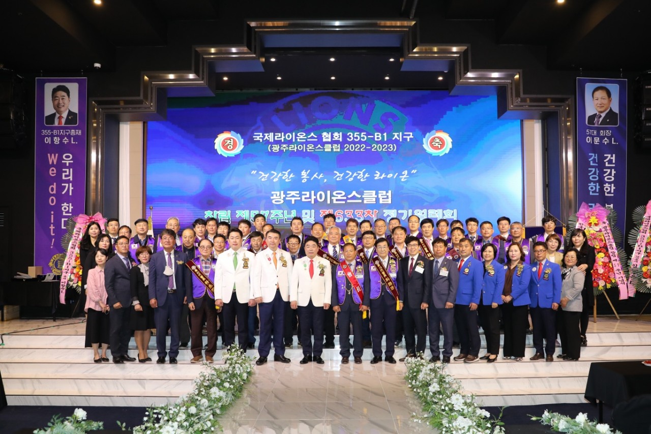 1966년 4월 서울라이온스클럽의 스폰으로 세계 최대 최강 봉사단체인 라이온스 헌장에 동참하여 57년간 지구와 궤를 같이해오고 있는 광주라이온스클럽의 57주년 행사가 총재 이항수L 초청으로 4월 18일 데일리 웨딩컨벤션에서 진행되었습니다.
