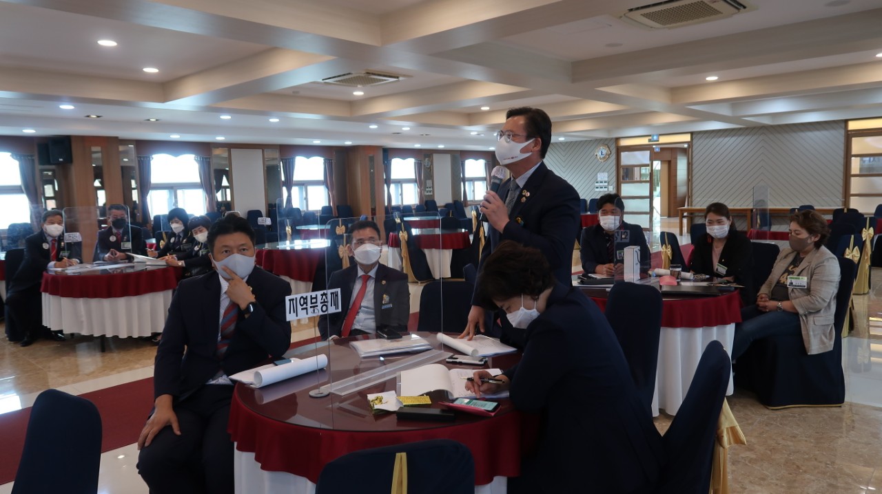 “함께,더불어,생명으로”라는 주제로 2021-2022 회기를 힘차게 운영하고 계시는 이길행 총재님의 개회 선언과 인사 말씀으로 회의를 시작하셨습니다.