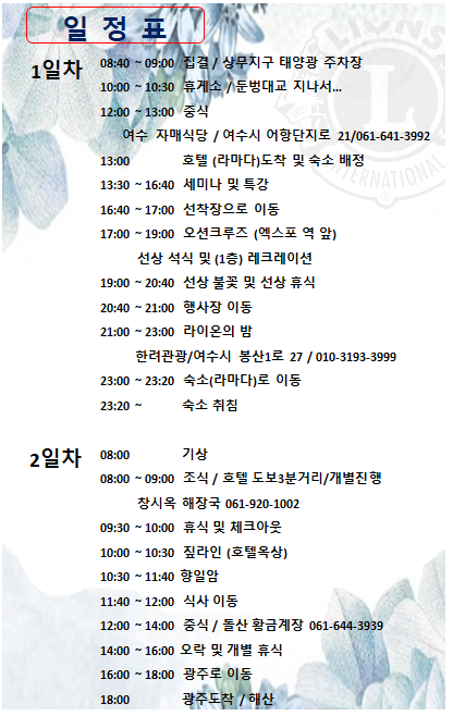 2026 제2회 임원회의 및 임원연수회(차량배차, 일정표)