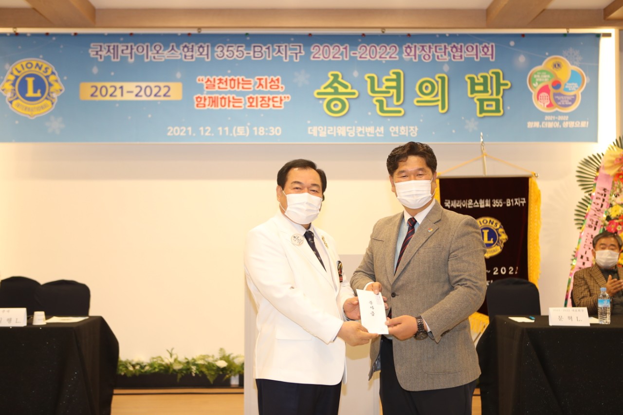 총재 이길행L께서 “6개월간 클럽운영하시느라 고생하셨고 서로를 위로와 격려하는 뜻깊은 날이고 남은 6개월동안 더 힘을 내셔서 새롭게 도전 해주시고 클럽유지와 회원관리및 봉사 활동에 전념 해주시길 당부하였습니다.