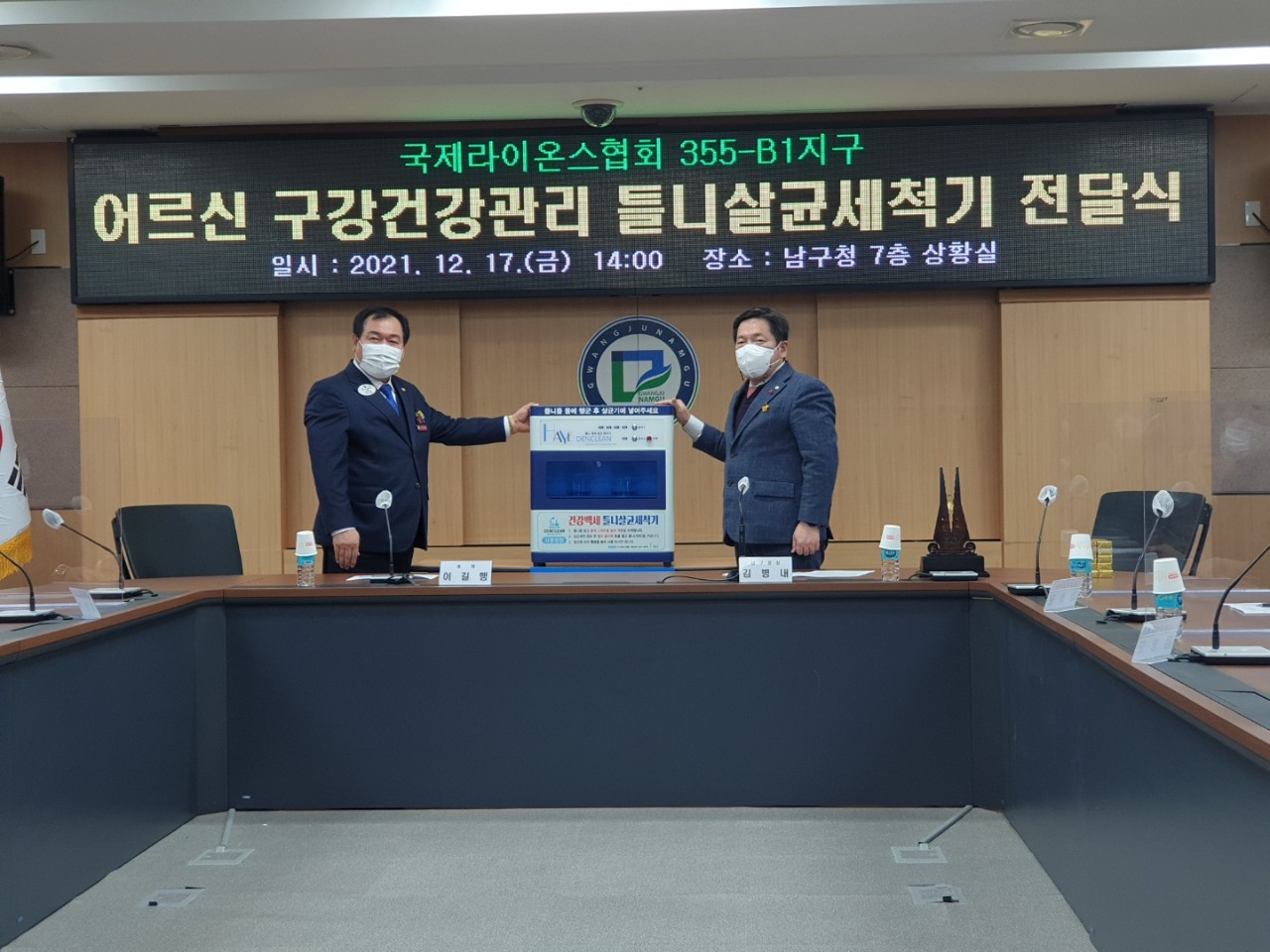 금회기 “함께 더불어 생명”으로라는 힘찬 슬로건으로 리더하고 계시는 총재 이길행L께서 어르신들 구강 건강관리를 위한 틀니 살균세척기 전달하였습니다.