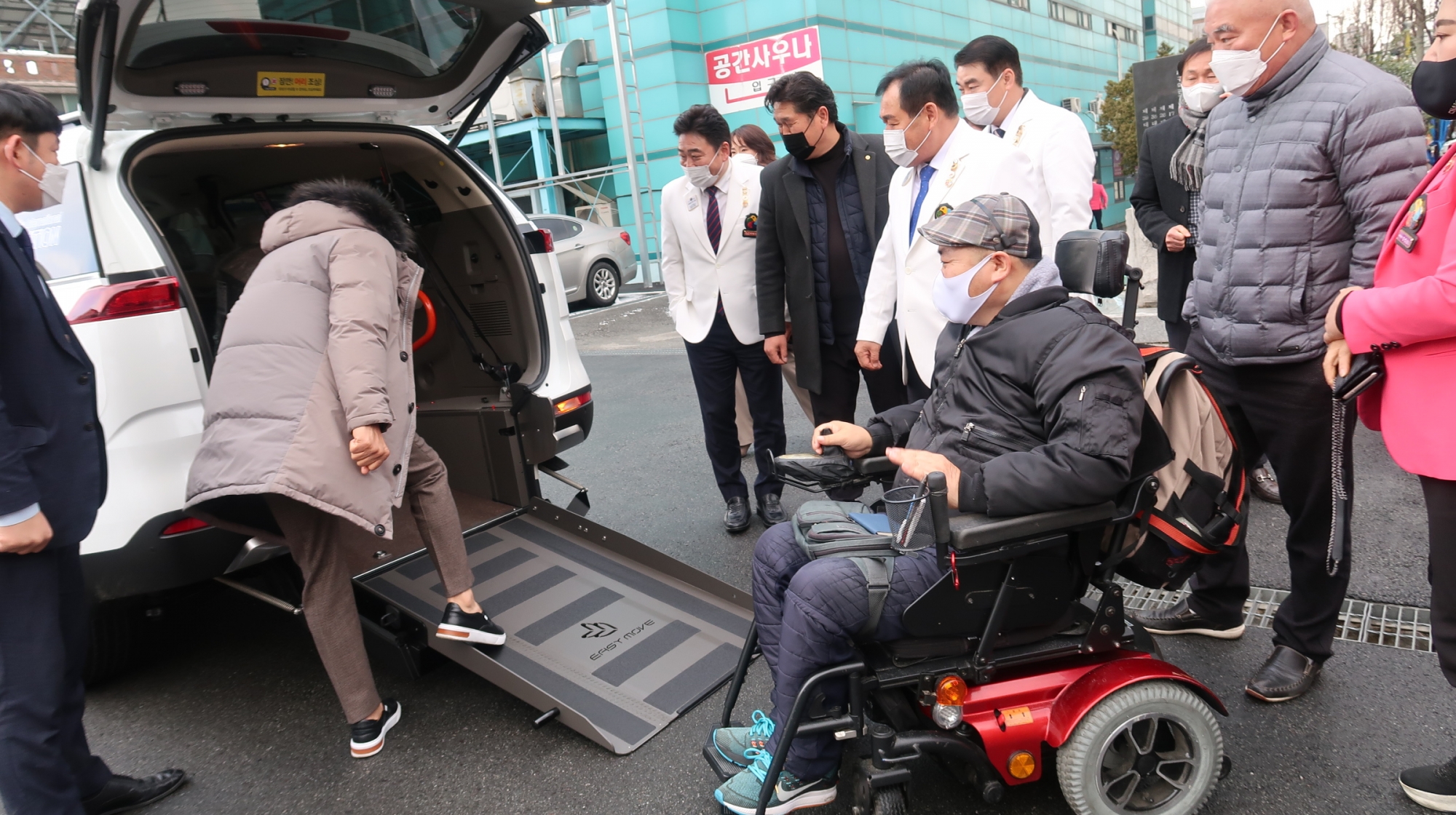 근육장애인 협회 박중규 회장께서 이동식 차량이 필요했지만 현실적으로 힘들었는데 꿈이 현실로 이뤄지니 행복하고 기쁜날이라고 감사의 인사를 하였습니다.