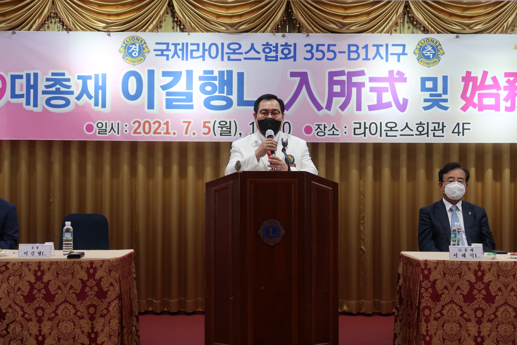 이길행 총재님은 입소식을 시작으로 “함께 더불어 생명으로”라는 슬로건으로 본 회기 공약 사항들을 강조 하면서 지구 임원 및 라이온스 회원들과 함께 가는 지구가 되길 바란다며 새롭고 변화가 추구된 봉사의 기틀을 만들어 가자고 개회사를 하였습니다.