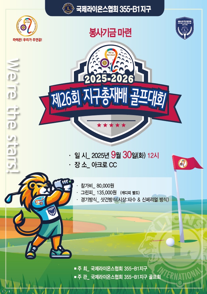☆ 국제라이온스협회 355-B1지구 제26회 총재배 골프대회(클럽대항전) 본선 개최 안내 ☆