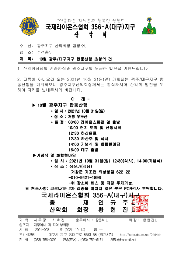 발 신 : 국제라이온스협회 355-B1지구 산악회.