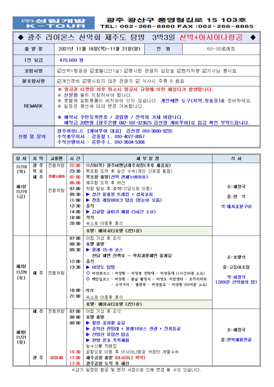 * 223차(11월 )정기산행(국내테마산행 제주도탐방 11월18일(목)-21일(일) *