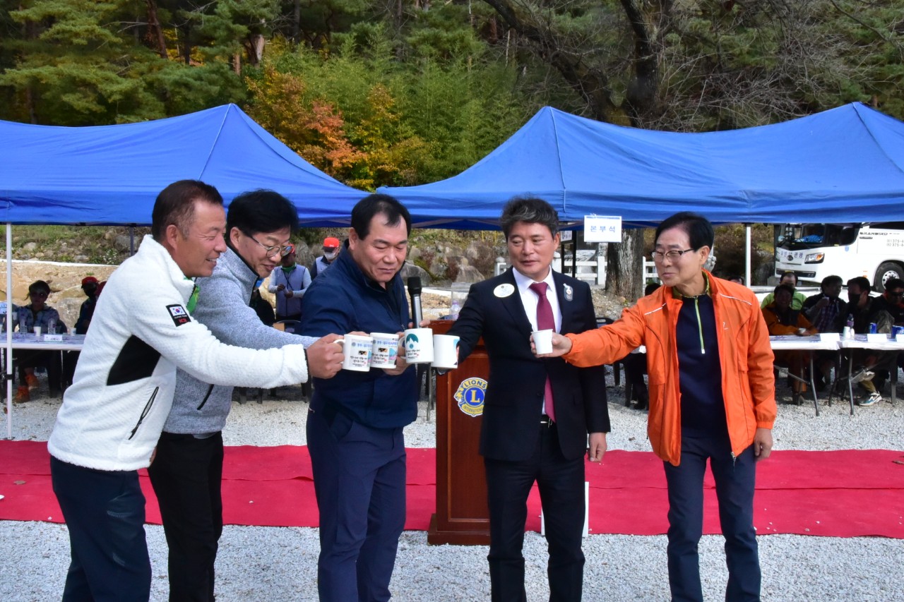 ”함께! 더불어! 생명으로!”라는 주제로 본 지구를 열정적으로 이끌고 계시며 매일 바쁘신 와중에도 광주지구의 위상과 광주지구•대구지구산악회의 발전과 합동산행 행사의 자리를 빛내어 주시기 위하여 참석하시여, 본 지구와 산악회의 무궁한 발전과 단합을 위하여 헌신 봉사해주시라는 응원의 말씀과 함께 산악회 발전기금 일백만원과 이백장의 스카프을 김정수 산악회장에게 전달 해 주신 이길행 총재님께 깊은 감사를 드립니다.