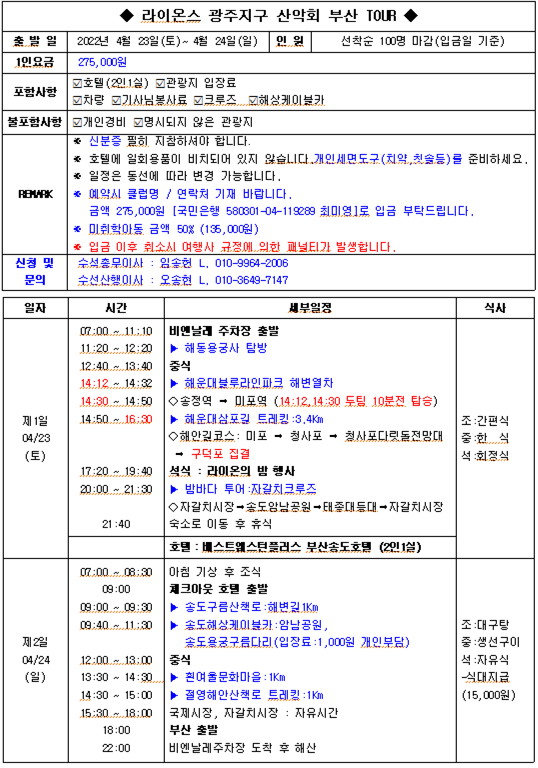 □ 일시 : 4/23(토)~4/24(일) [1박2일]