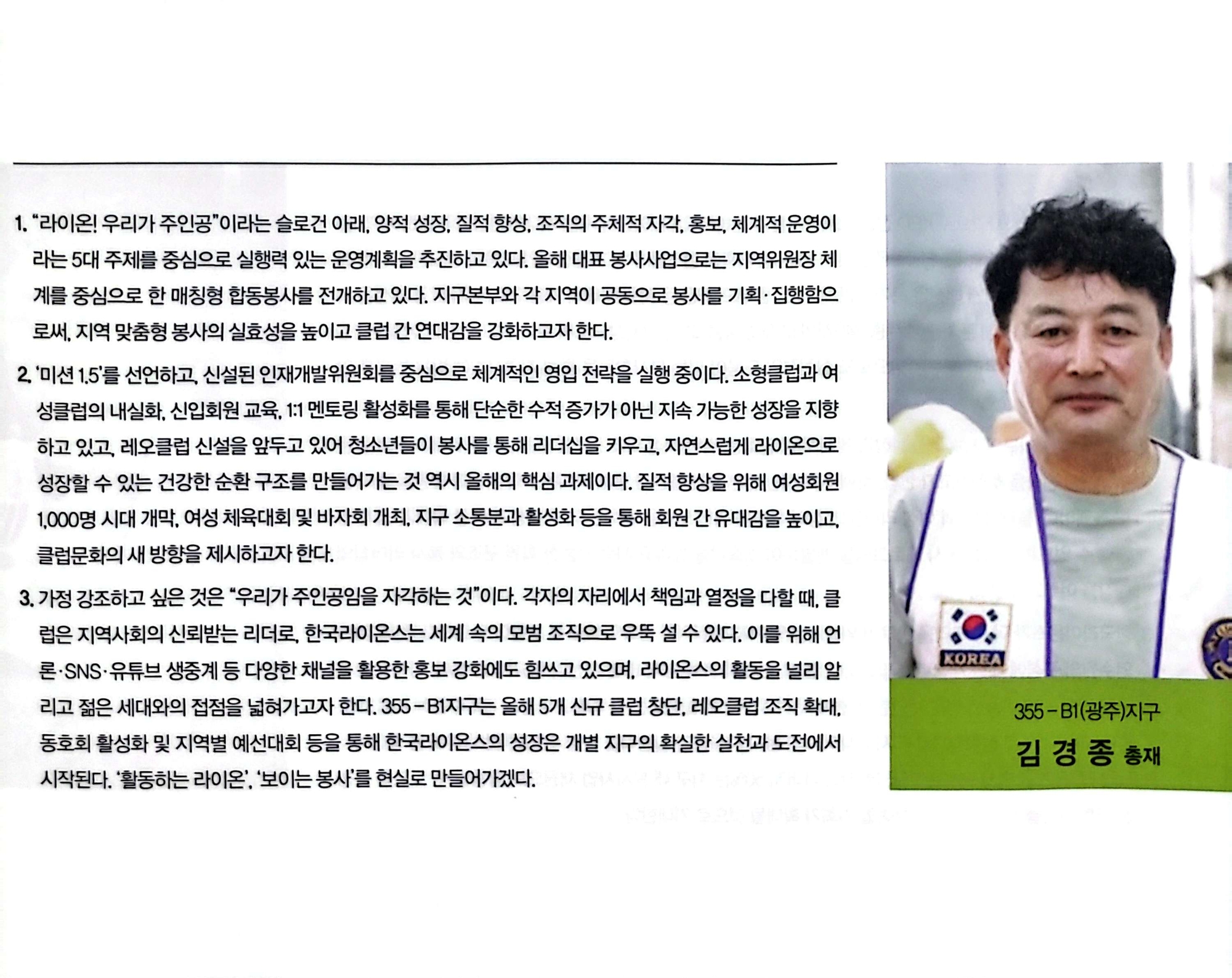 355-B1지구의 주인공 라이온들의 봉사 활동이 수록되어 있어 공유되길 바라셨습니다.