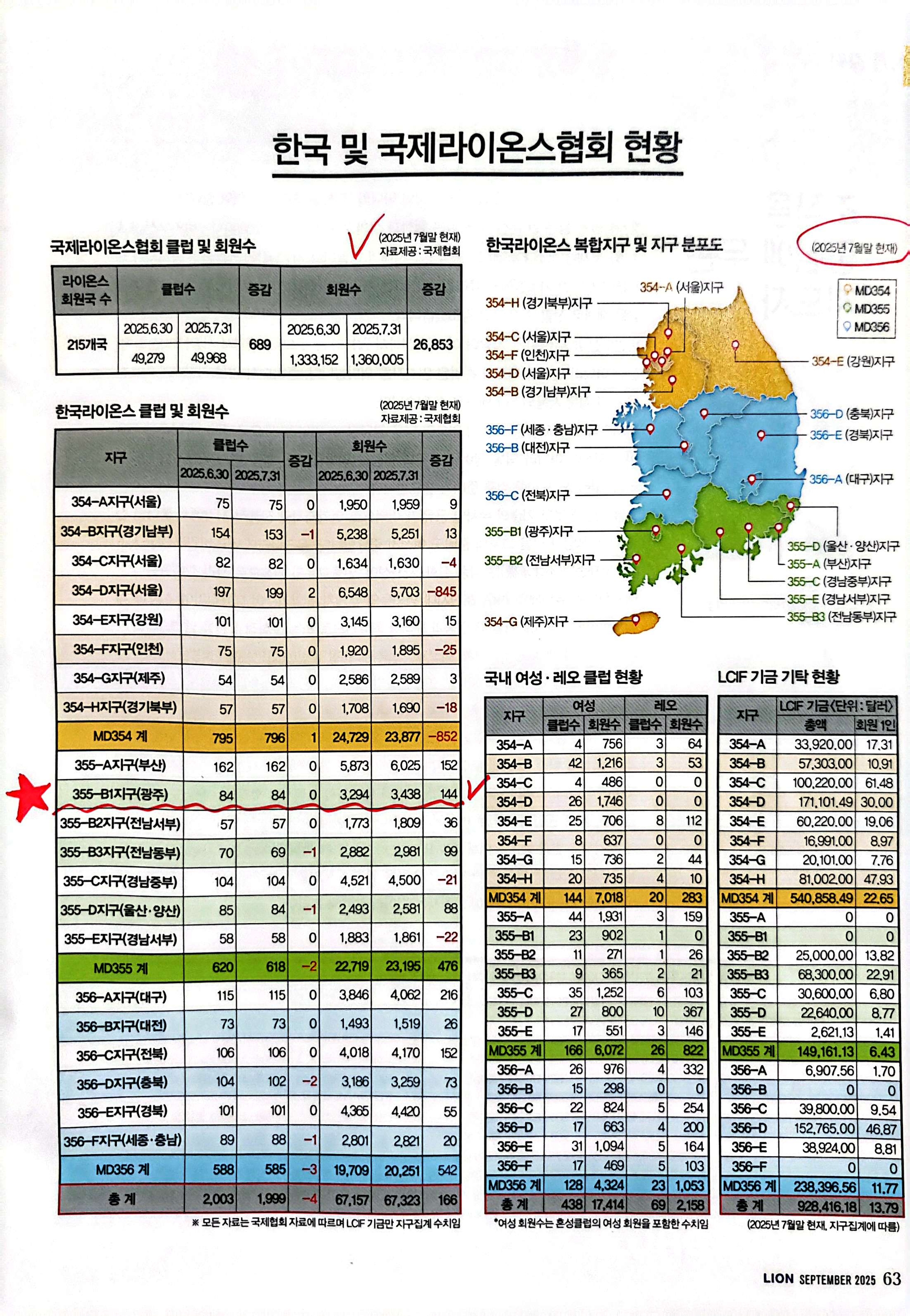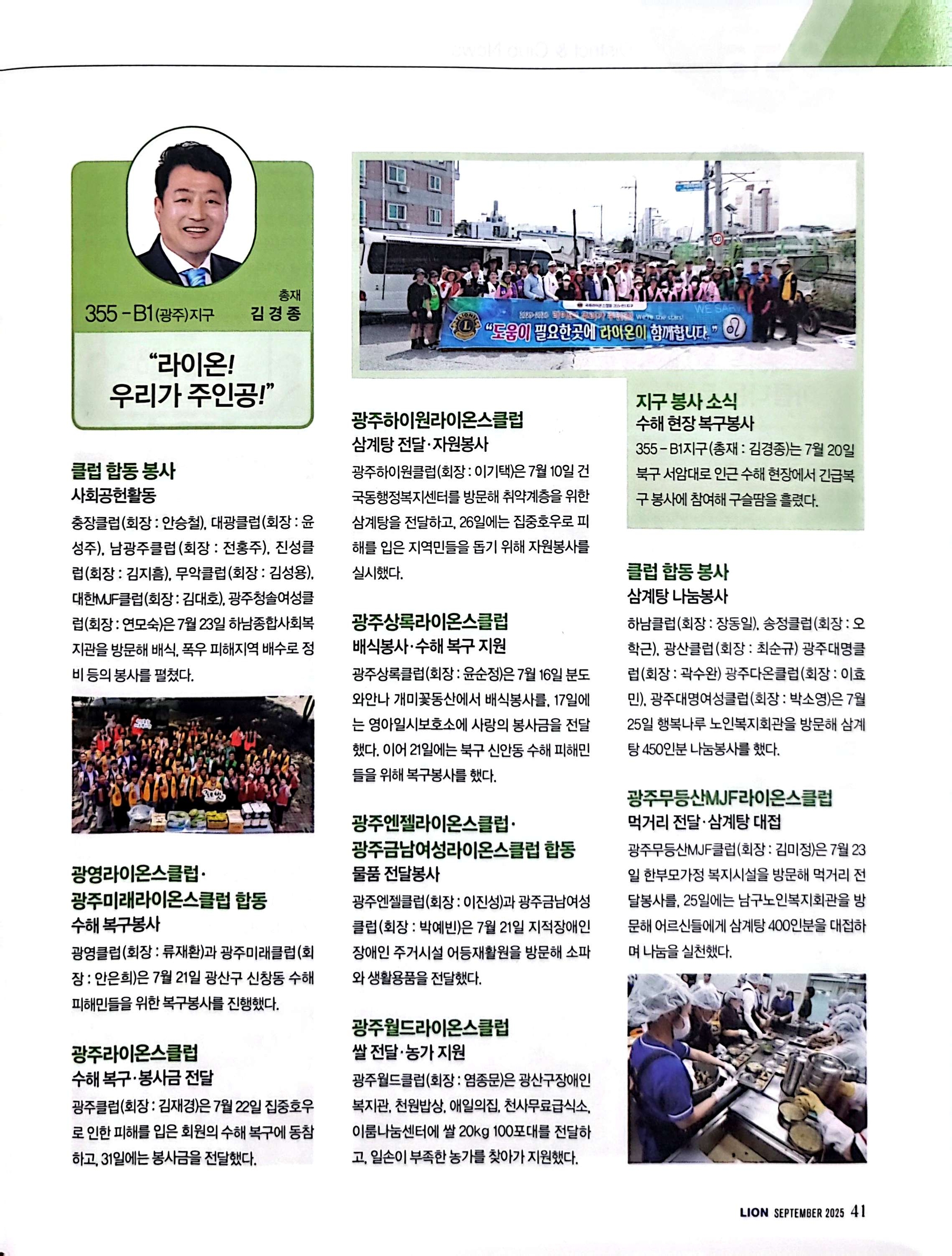 • 국제라이온협회공식기관지 9월호에 355-B1지구의 주인공 라이온들의 봉사 활동
