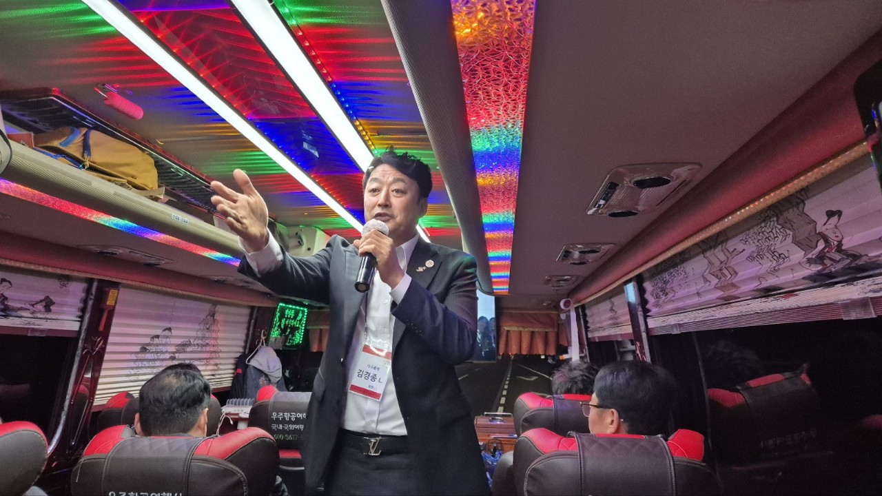 지구총재 김경종L.께서는 동남아대회 참석을 위해  광주 출발 장소에 도착하시는 라이온 한 분 한 분을 정중히 맞이하셨습니다