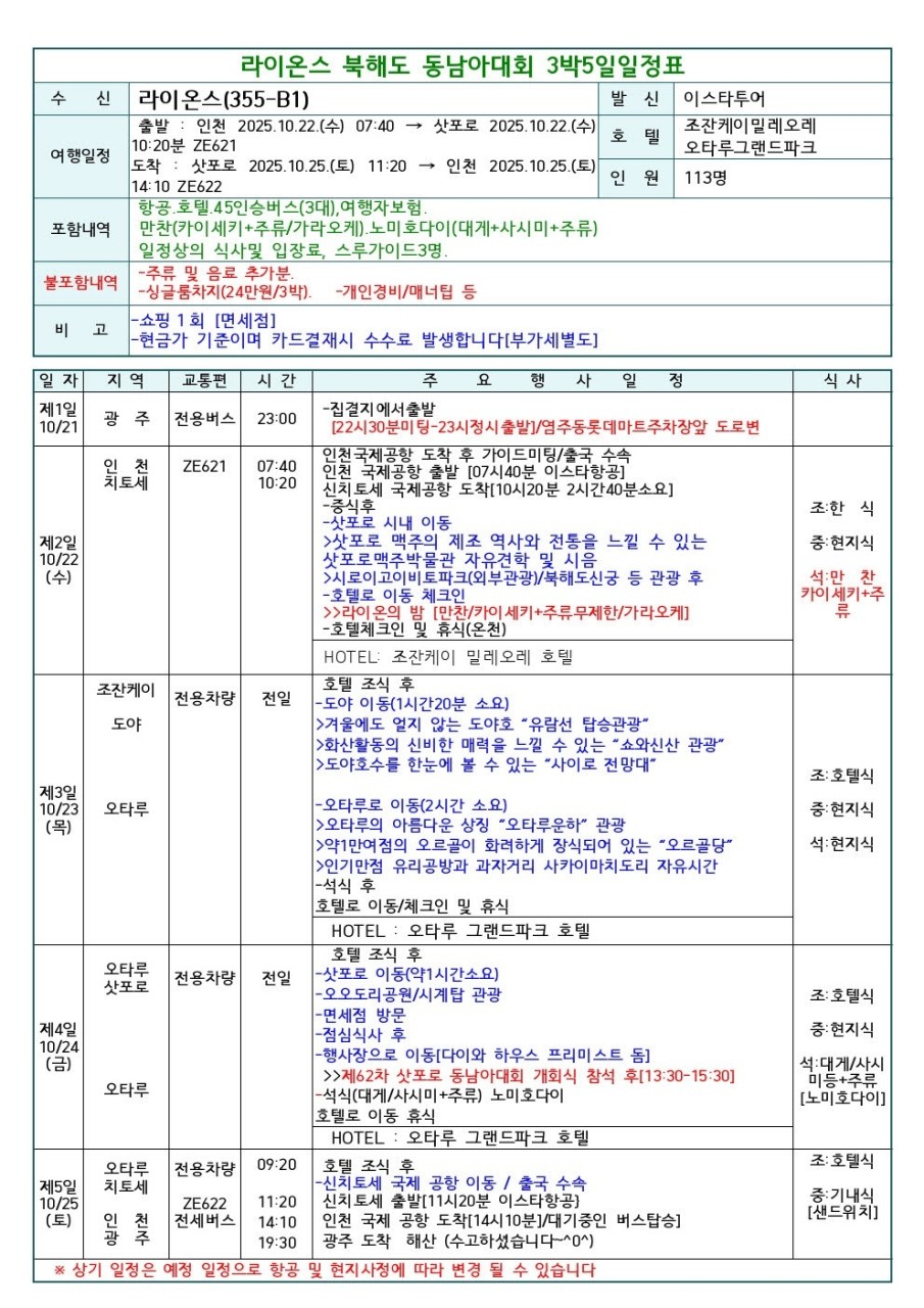 -  이동수단: 리무진 버스 4대(1호차~4호차)